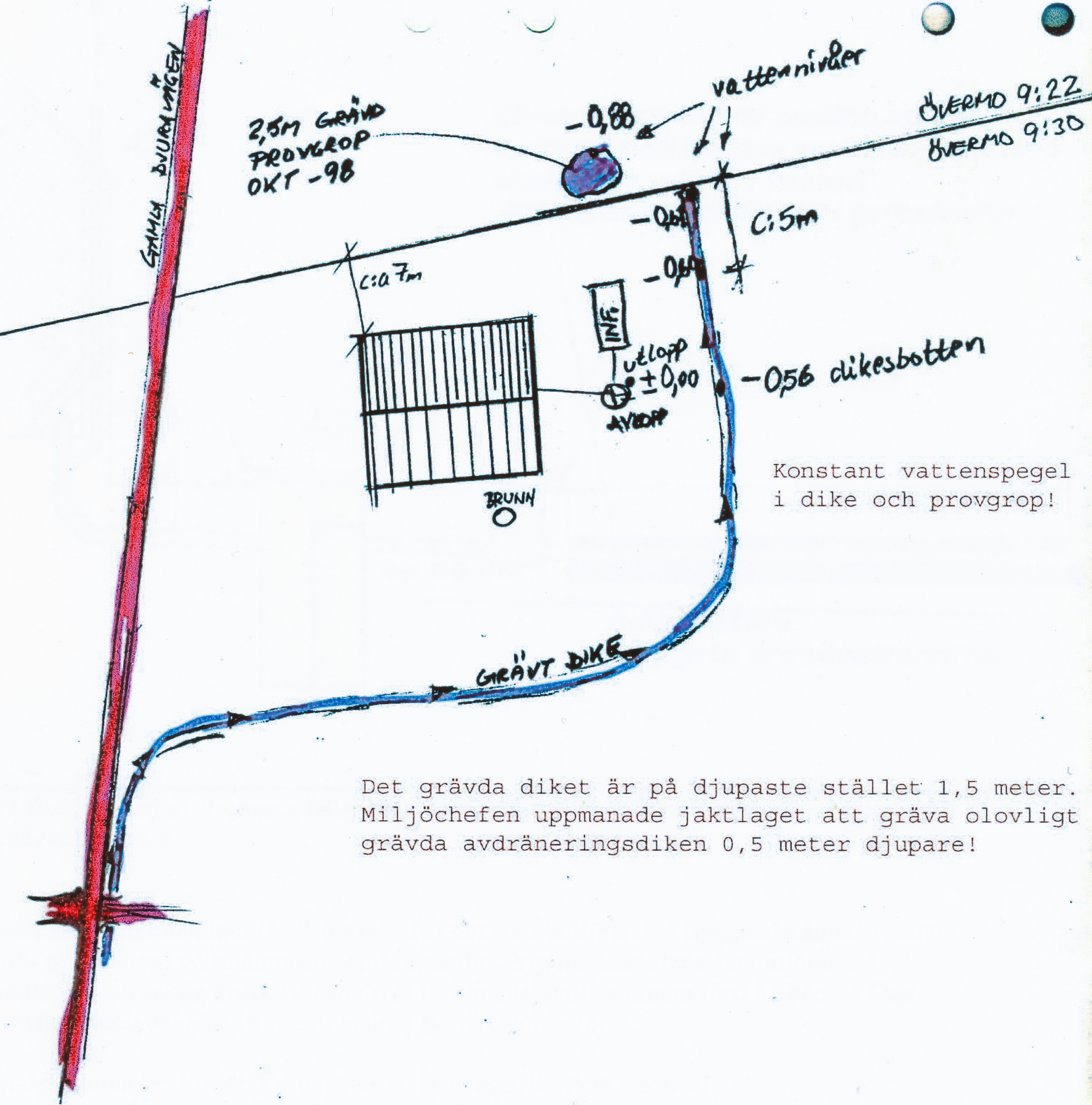 I och med denna upptäckt skulle miljöchefen naturligtvis ha stoppat planerna på att anlägga ett avlopp på denna plats. Placeringen är i ett surdrag nedströms en källa och där grundvattnet periodvis går i dagen.